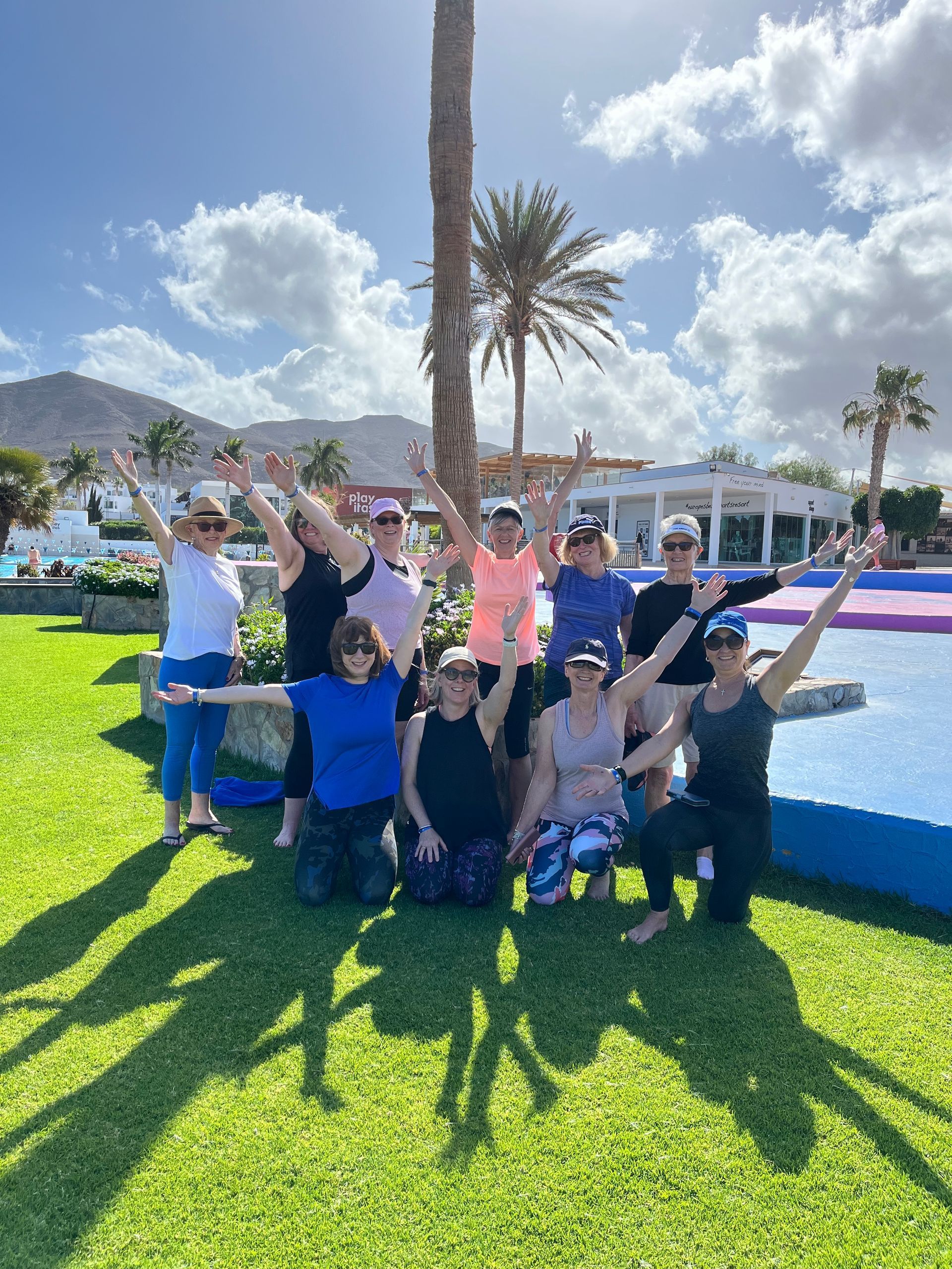 "I am going on a course" says my daughter. What sort of course" I replied. " A pilates retreat. Why don't you come?" "I have never done pilates before and certainly haven’t worn lycra. Where is it located?" I asked. In the Canary Islands she answered. Well I have never been there either! Three things to cross off my bucket list, I thought. The retreat was held at Playitas, Fuerteventura in a superb sporting resort next to the sea. Jo and her pilates group from Chester made me feel very welcome. An interesting group of ten, friendly, strong minded women all intent on keeping themselves fit. The five day course Jo had put together were varied from watching the sunrise over the mountain and sea to watching the sun go down on the beach. All very relaxing and meditative too. Of course, other sessions were more demanding for some!! Jo managed the group's abilities very well considering the wide range in the ages. Increasing the intensity of each move to suit the ability of each of us. Her relaxed style and sense of humour made the classes fun, interactive and informative. Opportunities at the retreat to participate in free sessions of other activities were also available to all and the Chester group challenged as many as they could fit in the day's schedule. The resort looked after their sporting enthusiasts very well with a range of excellent hotel accomodation, villas, apartments with all family needs. Also high on the list was the delicious food and varied menus prepared at the restaurants to feed those very hungry appetites. What more can one want! I certainly recommend pilates. It was my first experience and it certainly won't be my last. Thank you Jo for organising and leading this memorable pilates retreat. Patricia Watts from Wellington, New Zealand. 5 May 2025 If you're interested in joining the retreat next year, join the waiting list by clicking here :